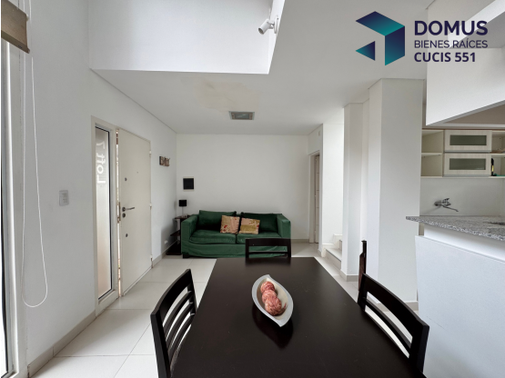 El departamento tiene en planta baja, living, cocina comedor completamente amoblada, lavadero y toilette. En planta alta dormitorio con placard y baño completo.