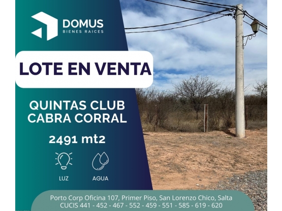 DOMUS BIENES RAICES VENDE terreno en esquina en barrio abierto Quintas Club.